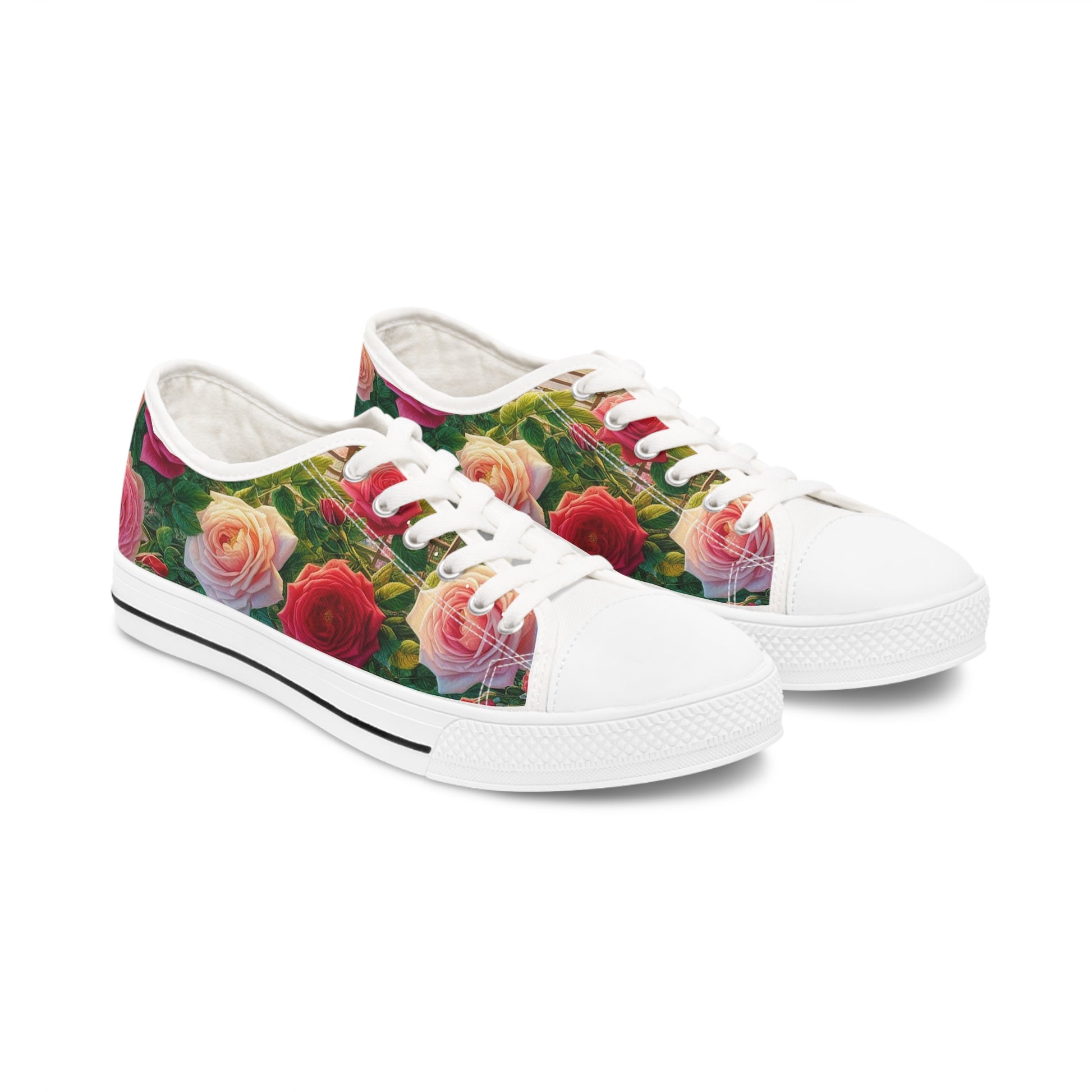 Made with breathable polyester canvas and featuring hi-poly deodorant memory foam insoles, these women's low top sneakers bear all the marks of an awesome shoe. Enjoy the silver metal eyelets along with the lace-up closure.